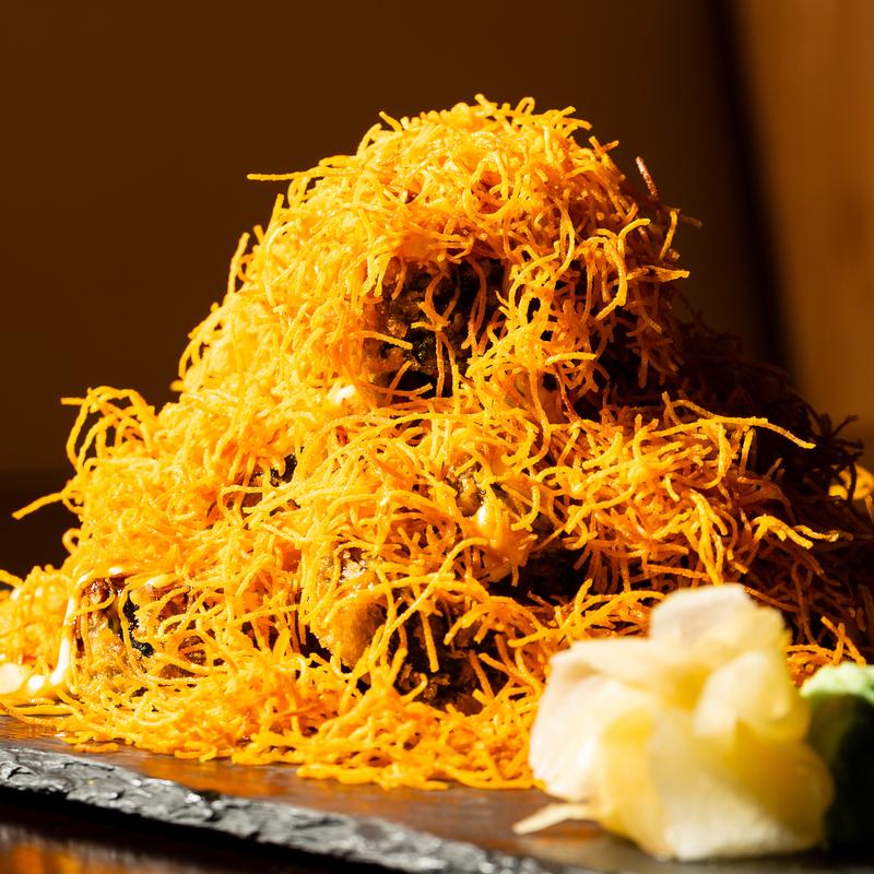 Deep fried mixed seafood topped with spicy mayo, eel sauce, masago & green onion