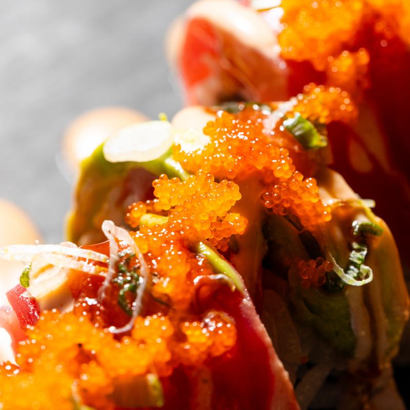 Spicy tuna, jalapeno, cilantro tapped with fresh tuna, avocado, masago, green onion, spicy mayo and eel sauce