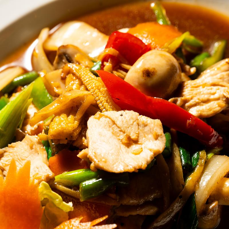 Stir-fried mixed vegetables with a choice of meat in a thai special sauce