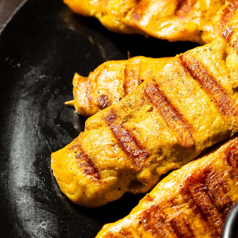 Grilled chicken on skewers served with peanut sauce and cucumber relish