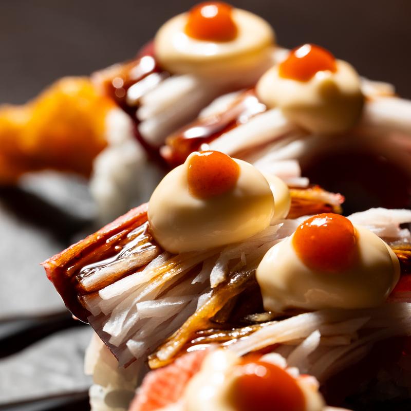 Deep fried avocado, cream cheese, shrimp & crab stick topped with torched crab salad, mayo, eel sauce & hot sauce